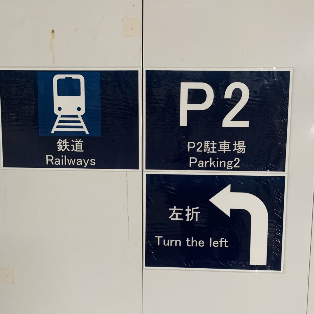 これも関西国際空港の表示案内です。左折が「Turn the left」になっています。「the」はいらないです。「Turn left」でいいでしょう。「Left」だけでもわかります。矢印もあるので、言葉は省略できます。