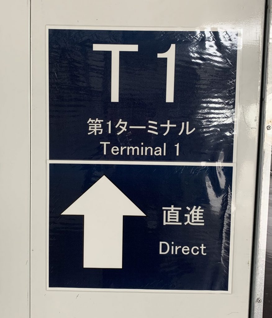 これは、関西国際空港にある表示案内です。直進が「Direct」になっています。「Direct」は「直通」という意味になりますので、「真っ直ぐ進め」という意味とは異なります。ここは、「Straight」でいいでしょう。そもそも矢印があるので、文字は省略することもできそうです。